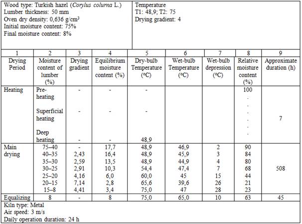 Drying turkish hazel lumber using the non-protective drying schedule