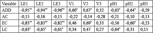 A correlation analysis was performed to understand the relationship between different parameters of the liquefied wood and wood characteristics. Table 3 represents the Pearson's correlation coefficients for 1:1, 1:2 and 1:3 liquid ratios with wood density, ash content, extractive content and lignin content.
