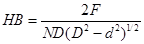(1)Where F is the force applied (N); d is the diameter of the indentation, in mm (average of two perpendicular diameters d1 and d2) and D is the diameter of the ball, in mm.