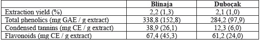 The results obtained for the ethanol-water extracts of Q. cerris heartwood are presented in Table 3.