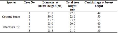The literature contains many references to the longitudinal variation (from the base to the top) of several wood properties in conifers and hardwoods. No information is available about the variation of physical, mechanical and chemical wood properties of oriental beech and caucasian fir naturally grown in Turkey. However, oriental beech is used in various places in the Turkish forest products industry (Bozkurt and Erdin 1997) and caucasian fir constitutes 81% of the forest tree seeds exported by the Forest Trees Seeds and Tree Breeding Research Directorate in Turkey (Karasahin et al. 2002). It is also important for end user to know how the wood properties of these species have economic importance vary at different heights in the tree. Nevertheless, information about the longitudinal variation of physical, mechanical, and chemical properties for oriental beech and caucasian fir grown in Turkey is still lacking. To use these tree species more effectively in the forest product industry, the wood properties mentioned above need to be determined.
