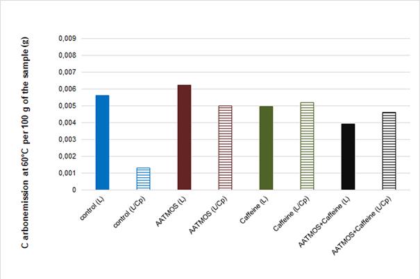 determination of carbon released at 60°C (temperature to simulate the real weather conditions).