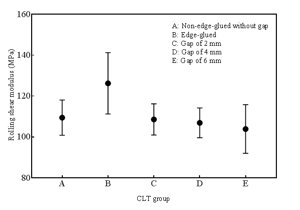 The influence of edge-gluing and gap size was found to be significant on the measuring of rolling shear strength of cross layers in CLT by the modified planar shear test. However, no influence was found for CLT specimens with gap size more than 2 mm in measuring rolling shear strength and for all CLT specimens in measuring apparent rolling shear modulus.