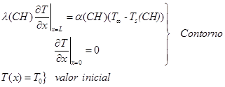 (2)Donde Ts(CH) es la temperatura en la superficie de la madera (K) en función del CH,