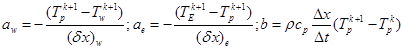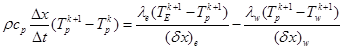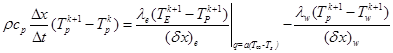 Para efectos de integración numérica de Ecuación 1, basado en el MVF, se consideran N volúmenes finitos en el dominio 0<x<L, donde el centroide es representado por el valor medio de la variable distinguido por el subíndice P(Tp) y los valores de T en los volúmenes adyacentes: Tw (atrás) y TE (adelante). Los límites del volumen finito centrado en P se identifican como w y e, respectivamente (Figura 6).