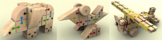 This research involves the application of the developed heuristic procedure to extended analysis of a production process in an actual woodworking facility with the aim of finding a process layout of improved performance. The real case of a production department at the manufacturer of wooden toy sets (Kusing Trade, s.r.o., Slovakia) has been brought under study. It is designated to multi-assortment parts fabrication, made of the European beech species (Fagus Sylvatica), as the components of definite construction sets (Figure 1). Some of the wooden constructions that can be assembled of components available in an exemplary toy set and offered by the manufacturer, are depicted in Figure 2.