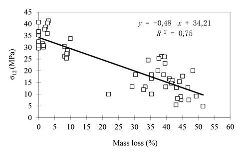 Exposure of Chinese poplar specimens to G. trabeum was associated with steady, closely correlated declines in both mass and compressive strength. The results suggest compressive strength losses can be more easily assessed by changes in mass than fungal associated effects other wood properties.