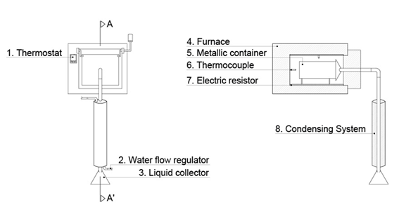 The pyrolysis of biomass was conducted in an electric laboratory oven using a container with approximately 0,003 m3. In all treatments, the container was filled completely with the biomass, and that was weighted before the pyrolysis. As shown in Figure 1, the heating control was conducted manually in increments of 50 °C every 30 minutes, which corresponds to an average heating rate 1,67 °C·min−1. The initial temperature was 100 °C and the final temperatures were 400, 550 and 700 ºC. After the process, bio-coal was weighted to calculate the gravimetric yield on the dry mass of biomass.
