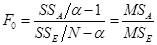 (2)The terms of (α-1) and (N-α) are the degrees of freedom and the error degrees of freedom for the parameter A, respectively. MSA and MSE are indicated the sum squares of means and errors for the variable A, respectively. The null hypothesis is rejected when the F0 is higher than critical value of F(,(-1,N-( , where α is the level of the significance .