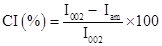 (1)Where I002 = diffraction intensity of crystalline peak at 20,08° - 25,08° 2θ, Iam = the intensity of the amorphous peak at 15° - 18° 2θ.