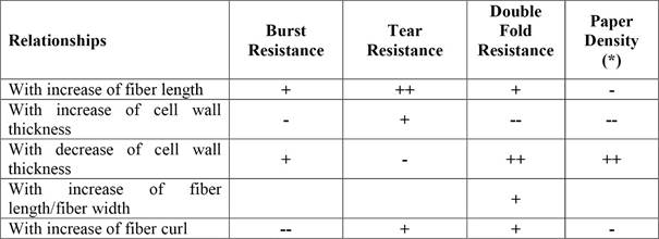 According to Table 5, as the fiber cell wall thickness decreases, the bursting, double-folding resistance and density of the paper to be produced increase, while the tear resistance decreases. As the fiber length decreases, the density of the paper increases, but the resistance values decrease.
