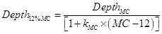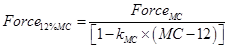 (3)Where: Vel12 %MC (m·s-1) obtained from ToF or longitudinal frequency at 12 % of MC, VelMC (m·s-1) at a given MC, Depth12 %MC (mm) obtained by the Pilodyn 6J Forest NPR instrument, DepthMC (mm) at a given MC, Force12 %MC (kN) obtained by the SWRM instrument, ForceMC (kN) at a given MC, kMC (as per unit) adjustment factors, which are listed in Table 4.