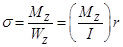 (8)Where, i: turning radius (mm); I: moment of inertia (mm4); A: transversal section area (mm2); r: radio (mm); σ: normal tension (flexural) (MPa = N/mm2); MZ: bending moment (N∙mm); WZ: resistant module (mm3).