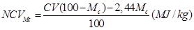 (3)Where: CV- calorific value, for 0% moisture content, in MJ/kg; Mc -moisture content, in %.