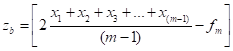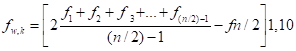(5)where fn is n determined strength values, arranged in the ascending order (f1 < f2 < f3 <...< fn ); if the number of the specimens is odd, the highest value is disregarded. The equation is based on the estimator zb (Equation 6), for the sample of 2m values x1 + x2 + x3 +...+ x2m .