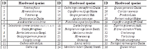 These previous studies demonstrate the importance of assessing the physical and mechanical properties of wood in order to obtain reliable and safe estimates for structural dimensioning. Several authors already investigated some of the hardwood species that are studied in the present work, however, focusing on physical and mechanical properties of only few species: Mezilaurus itauba (Silva et al. 2014), Hymenaea sp (Icimoto et al. 2015, Segundinho et al. 2015), Apuleia leiocarpa (Soriano et al. 2015), Cedrela odorata (Fernandes et al. 2018), and Peltophorum vogelianum (Christoforo et al. 2019b).
