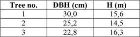 , are 65,20; 24,39 and 1,64 respectively. Points showed observed values in sample trees