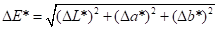 Posteriormente se utilizó el índice de diferencia de color de la madera ΔE* propuesto por la Commission Internationale de L’Eclairage (CIE 2004), con el cual se compararon los parámetros del color del culmo de bambú a diferentes edades. Este índice define la magnitud de diferencia de color usando las coordenadas CIE-L*a*b* de acuerdo con la siguiente Ecuación 1: