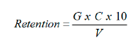 The retention content (kg/m3) for each treatment was calculated as follows (Equation 1):