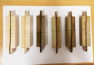 Forty samples were prepared in total: 10 welded control samples and 30 welded samples impregnated with the selected concentrations of ACQ (alkaline copper quat). Before the experiment, the test samples were dried until they were stable at 20°C ±2°C, 60%±5% relative humidity and 12% moisture gradient in climate room. After the impregnation process, the samples were subjected to the welding process at the same moisture gradient.