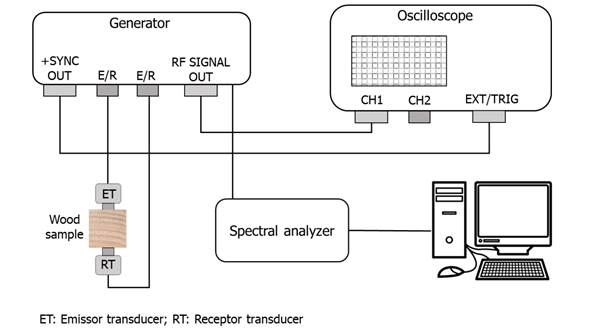 Ultrasonic wave propagation has been reported as a fast and effective method to determine the elastic constants of wood (Bucur 2006, Gonçalves et al. 2011). This is relevant considering the destructive nature of mechanical testing and the difficulty of determining the different properties of wood due to its high variability. Other aspects that bear mentioning are the cost of performing a high number of tests as well as the complexity of both the test and the manufacturing of the specimens. This method is particularly important for obtaining information on the shear modulus and Poisson’s ratios (Keunecke et al. 2007). Different studies have been carried out on native woods and radiata pine using ultrasound, which has provided useful information regarding their elastic constants (Niemz and Aguilera 1995, Sonderegger et al. 2010, Baradit and Niemz 2012).