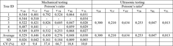 In addition, the values of the Poisson’s ratios obtained using ultrasound were similar to the literature for softwoods.