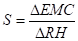 The sorption ratio (S) is a parameter of hygroscopicity proposed by Noack et al. (1973) to characterize the sensitivity of the EMC variation (ΔEMC) related to the variation in RH (ΔRH) (Equation 1). This parameter assumes that there is a linear relationship between EMC and RH. Therefore, the S-ratio was calculated for desorption between 33 % and 76 % RH.