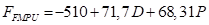 (12)Where FEMPU , FEMD2, FEMPV = withdrawal force capacities of the dowels glued with PU, D2, PVA, respectively, from the edge of MDF (N); FEPPU , FEPD2, FEPPV = withdrawal force capacities of the dowels glued with PU, D2, PVA, respectively, from the edge of PB (N); FFMPU , FFMD2, FFMPV = withdrawal force capacities of the dowels glued with PU, D2, PVA, respectively, from the face of MDF (N); FFPPU , FFPD2, FFPPV = withdrawal force capacities of the dowels glued with PU, D2, PVA, respectively, from the face of PB (N); D = dowel diameter (mm); P = dowel penetration (mm). According to each adhesive type and each material type, a total of 12 predictive expressions were developed; 6 for edge withdrawal force capacity and 6 for face withdrawal force capacity. The coefficients of determination (R2) values were 0,9384; 0,8240; 0,8562; 0,8544; 0,8747 and 0,6919 for the edge withdrawal force capacity Equations (1), (2), (3), (4), (5) and (6); and 0,7169; 0,8332; 0,8416; 0,5163; 0,5983 and 0,7568 for the face withdrawal force capacity Equations (7), (8), (9), (10), (11) and (12), respectively.