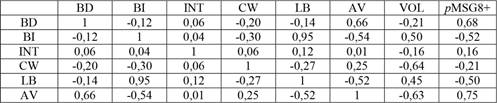 An analysis of correlations was addressed to notice relationships between log attributes. The correlation matrix results are shown in Table 3. It was noticed higher correlation between BD and AV and pMSG8+, and between BI with LB, AV, VOL and pMSG8+ . The results about variables and correlations were used to define variables being used in the modeling regressions.