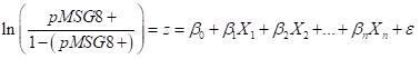 ,as Gujarati and Porter (2010) suggest for transforming a response variable defined as a proportion. Thus, the multiple linear regressions were fitted using the z variable; however, for recovering the original response variable (pMSG8+), we used the transformation variable