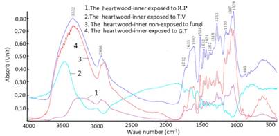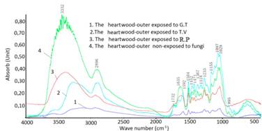 FT-IR spectroscopic analysis is a powerful tool for exploring the effects of fungal activity on various wood components, especially the three main polymers (cellulose, hemicellulose and lignin). Attempts to use this technique to examine extractives content have proven more challenging (Lipeh et al. 2019).