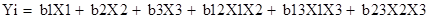 Yi = Response variable; bi = Coefficients; Xi = Proportion of each species in the mixture.