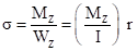 Where i: radius of gyration (mm); I: area moment of inertia (mm4); A: cross sectional area (mm2); r: radius (mm); σ: normal stress from bending (MPa); Mz: bending moment (N∙mm); Wz: section modulus (mm3).
