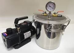 Saturation with water to guarantee maximum swelling was achieved by submerging the specimens under water in a vacuum-tight container and extracting air by several vacuum cycles as shown in Figure 4.