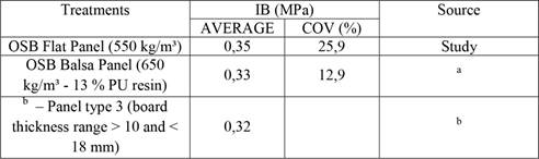 The IB value is shown in Table 4. This result was compared with the minimum value given in EN 300:2006 (2006) and with values obtained for similar panel presented in the literature.