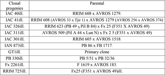 To determine each variable, a triplicate was used for each clone of Hevea brasiliensis.