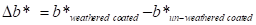 A positive value in the a* axis represents the red color. It can be seen in Table 3 that with the increase of weathering the redness of the samples increases for both kinds of varnish applications. In the case of a* no significant differences were found between both kinds of application which can be confirmed by the homogeneity groups that are similar for the samples weathered during the same period of time for both applications.