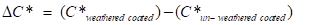The yellow/blue color tone (b*), the red/green color tone (a*), and lightness (L*) of weathered and un-weathered coated boards were determined using a X Rite Ci62 Series Portable (X-Rite, Grand Rapids, MI, USA) (Wavelength resolution 10 nm, measurement geometry D/8o) with a D65 standard illuminant (ASTM standard D 2244-3 2007). The CIELAB system, characterized by the three axis L*, a*, and b* was used. L* represents lightness, varying from 100 (white) to zero (black), a* is the red (+) or green (-) tone; and b* is the yellow (+) or blue (-) tone (Esteves et al. 2019, Cavus 2021, Ayata et al. 2021a, Ayata et al. 2021c, Ayata et al. 2018). The CIE L*C*H* coordinates and parameters differences ΔH*, ΔC*, Δb*, ΔL*, Δa* and ΔE* were calculated using Equation 1, Equation 2, Equation 3, Equation 4, Equation 5, Equation 6, Equation 7 and Equation 8: