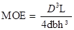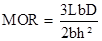Where D is the distance between machine supports; L is the load variation before the proportionality limit in the generated "Force x displacement" graphs from static bending; d is the displacement variation corresponding to the force variation; Lb is the breaking load and b and h are the dimensions of the specimen cross section.