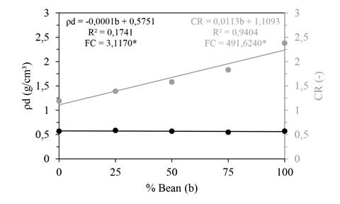 Figure 2 shows the physical characteristics of apparent density and compaction ratio found for agglomerated panels with different additions of bean residues.