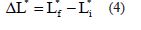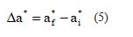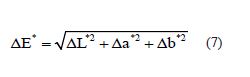 Where; (L*, (a*, (b* are the changes between the initial (i) and in different periods (f). A low (E* corresponds to a low color change or a stable color.