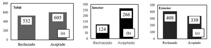 Por tratarse de un de un problema de clasificación, en este caso la clasificación de aceptación/rechazo del tablero, en la evaluación de los modelos se utilizó como métrica la matriz de confusión. Esta es una herramienta que permite calificar el desempeño de un algoritmo de aprendizaje supervisado (Düntsch y Gediga 2019, Luque et al. 2019).