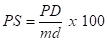 where PS: pith eccentricity (%); PD: pith displacement given by the distance between the geometric center and the actual pith position (cm); and md: mean disc diameter (cm). Being,
