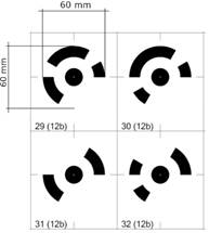 Se emplearon dianas codificadas de 14 bits generadas por el PS, mostradas en la Figura 2. Su finalidad es facilitar al software la identificación de un conjunto de puntos en distintas fotografías. Este proceso es necesario para determinar la posición de las cámaras en el momento en que fueron usadas, lo cual es la base para generar el modelo 3D a través de la identificación del resto de puntos en la mayor cantidad de fotografías posible. El uso de las dianas mejora la precisión y exactitud en la identificación de puntos o elementos de textura que se encuentran en más de una fotografía (Fraser 1997, Zou and Meng 2020).