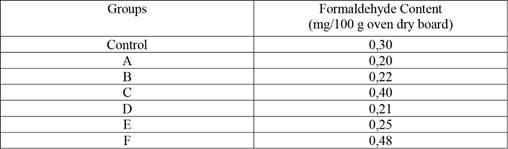 Similar findings have been reported by other researchers. Colak and Colakoglu (2004) determined that the formaldehyde emission values of plywood panels were affected differently by various boron compounds. According to Ayrilmis et al. (2016), the application of MFC with UF resin is an environmentally favorable approach for lowering formaldehyde and VOC emissions from wood-based panels.