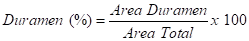 Las propiedades estudiadas fueron, la distribución de áreas absolutas y relativas de duramen