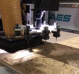 The drawing placed on the panel sheet was coded with the help of the CAM program and cut on a three-axis CNC (AES Raptor 2142, Turkey) machine (Figure 5).