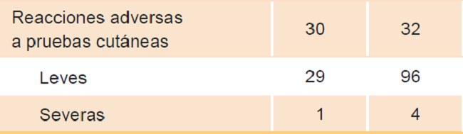 El estudio multicéntrico de pruebas cutáneas con una única fuente de proteína de látex (clon 600) en dos concentraciones mostró que la prueba cutánea es de 95 a 99 % sensible y 96 a 100 % específica, con base en la historia clínica en comparación con los estudios serológicos específicos que en la misma población demostraron mediante el inmunoensayo Immunocap (Phadia, Uppsula) una sensibilidad de 76 % y mediante el AlaSTAT de 73 %.23