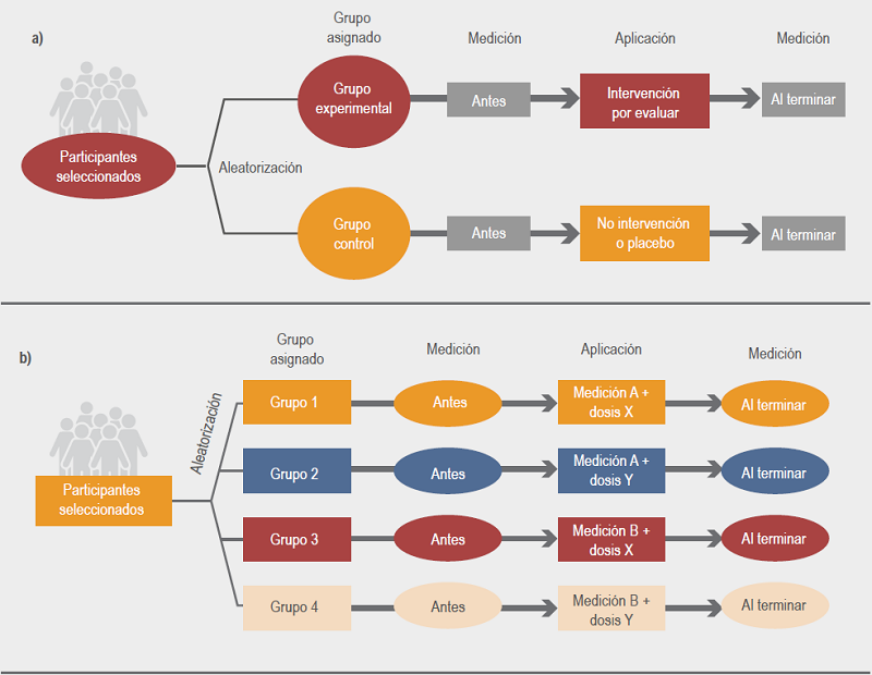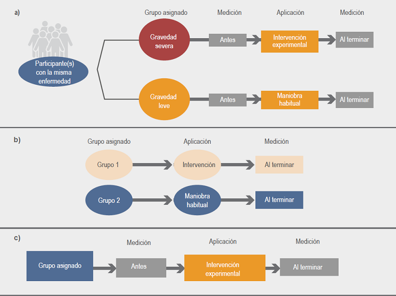 Abstract: Experimental studies are used to assess the efficacy and effectiveness of therapeutic (pharmacological or surgical), preventive (such as vaccination or lifestyle changes) or educational interventions (e.g., workshops to improve quality and healthcare). There are different experimental studies but, currently, randomized controlled trial (RCT) is recognized as the type of study that provides the highest level of evidence. When this type of research cannot be carried out, there are quasi-experimental studies, where there may be no randomization or a control group; however, this type of studies has a lower degree of validity. This article describes the way different types of RCT and quasi-experimental studies are performed; their advantages and disadvantages are also explained.