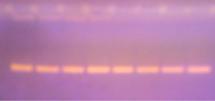 El producto amplificado fue de 144 pares de bases (pb), para el polimorfismo 308 y de 151 pb para el polimorfismo 238, lo que se evidenció en una banda sobre el de agarosa teñida con bromuro de etidio (figuras 1 y 2).
